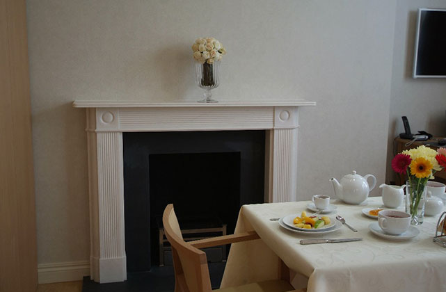 Living Space: Beautiful living room with large double sofa (it folds into a sofa bed for guests) and fireplace.