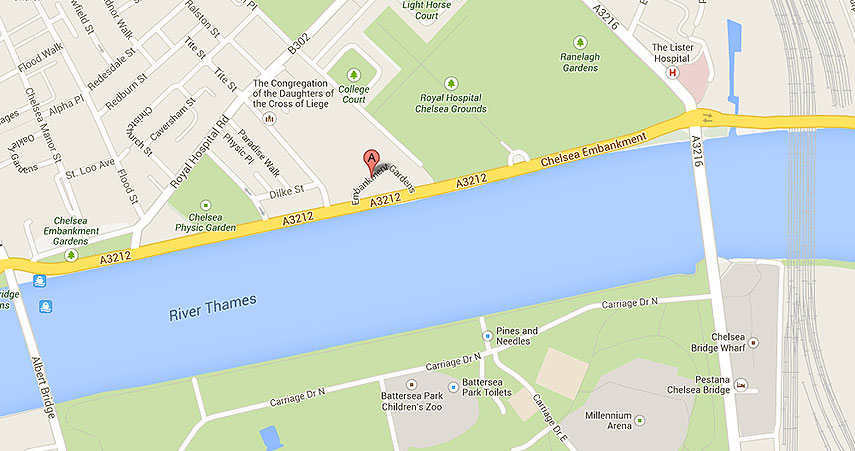 1 bedroom flat with stunning views of the river Thames and Battersea Park from both the living room and bedroom. In the entrance hall you’ll notice the wooden panelled walls and hanging chandelier which set the sophisticated tone for the rest of the home. Step into the sitting room and feel your toes against the plush, red rug which lies before the large double sofa (it folds into a sofa bed for guests). Recline and admire the rose bouquet which sits on the fireplace, or the red brocade curtain drapes. Find the lever along the wood panelled wall until it slides to reveal a hidden kitchen, complete with super-slick chrome fixtures and modern appliances. Head into the master bedroom where a muted, teal wallpaper will lull you into a sense of calm. Relax on the king size bed beside the stylish, industrial radiator, and watch the wall-mounted television, or pamper yourself before the floor-ceiling mirrors. Next door in the brand new shower room, enjoy a luxurious power-shower while a fluffy towel heats on the shiny chrome rack. The Area: Traditionally a haunt for the London bohemia, Chelsea is now one of the city’s most affluent areas, with wide, elegant boulevards of period properties. Take a trip to King’s Road and Sloane Square and Avenue, the crown jewel of London haute-couture. In times past it was also a haven to artists, scientists, and many other influential people. Chelsea was originally known as the “village of palaces” in the 17th Century, the only residents being those in palatial manor houses. Residents included Henry VIII, Sir Thomas More, Elizabeth I, the Duke of Monmouth and the Duke of Beaufort. On Embankment Gardens’ doorstep you’ll of course find the upscale Chelsea Embankment, with its wide view of the Thames and the elegant Ranelagh Gardens. Further north, explore the shopping delights of King’s Road, and the world famous museums of South Kensington. Central London is accessible in just 20 minutes via the nearby Sloane Square underground station. |